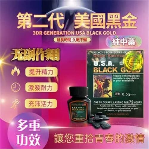NT$920美國黑金作為一款男性保健品,功效十分全面,無論是在治療改善陽痿(ED)、還是作用在早洩(PE)問題上,都非常的有效!並且美國黑金本身就是一款非處方類長期保健品,持續的堅持服用可以在很大程度上改善增強男性的性功能。 詳情 -